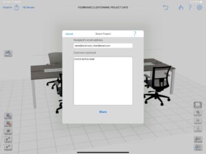 - Add the recipients email address and add any comments you would like to include. To send the project to multiple people, simply separate the email addresses with commas. To continue, tap Share. Please note: You will only be able to share this project with email addresses that are associated with KITS licenses. If you enter in an email that has not been registered, you will receive a warning.