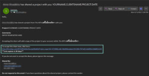 - You will receive an email from sysmon@kisp.com. Here you will find all the project details such as: Project Name, Comments, and a URL to the shared project. Tap on the link to continue. Please Note: The shared project link will expire in 30 days.