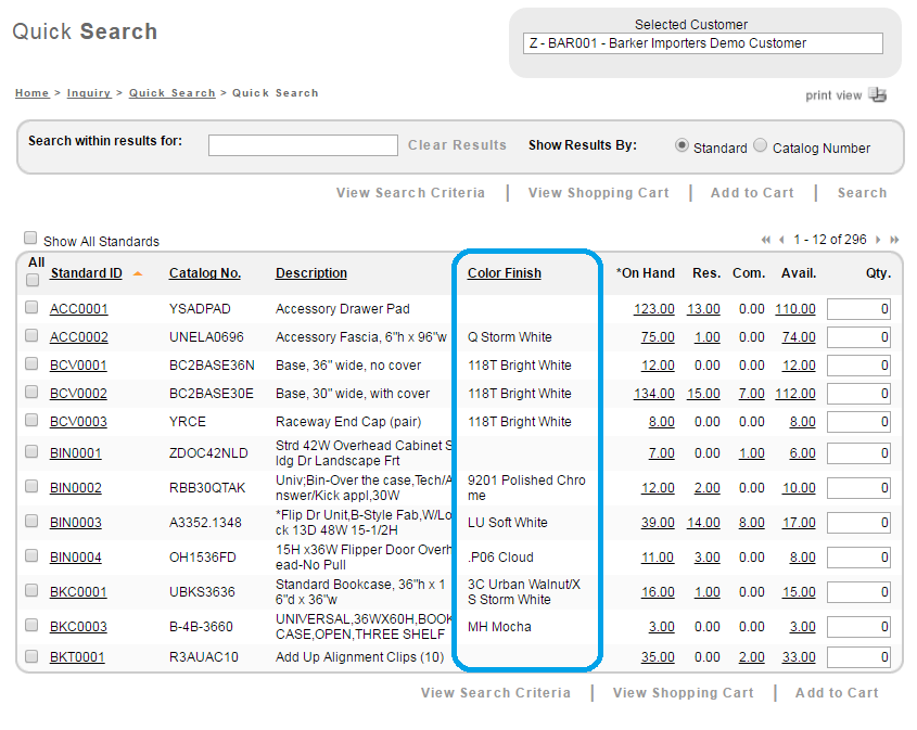 Now whenever the User performs an inquiry using Quick Search, the Show Color Finish checkbox is selected by default.
