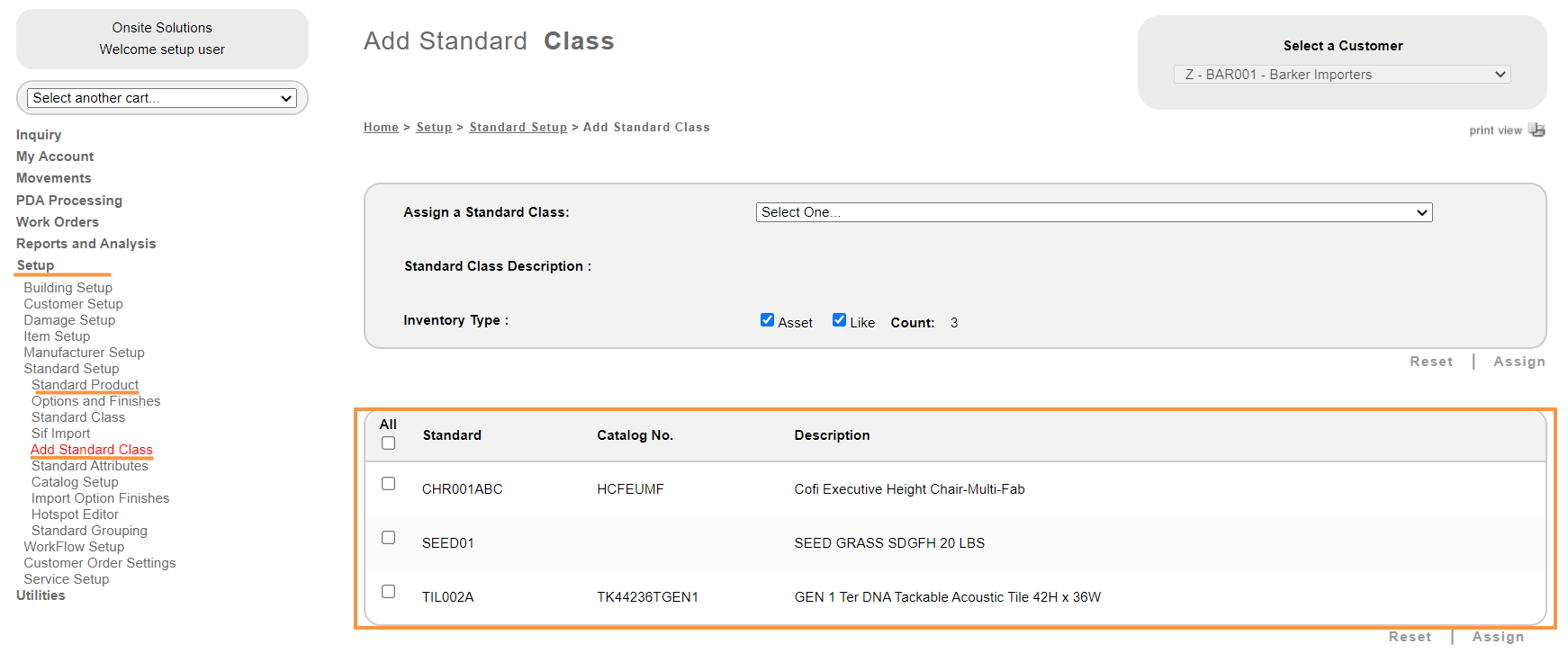 First, make sure the Customer Number on the top right corner is the one under which you’ve created the Standards. If not, use the Select a Customer drop-down selection box to pick the correct Customer Number.