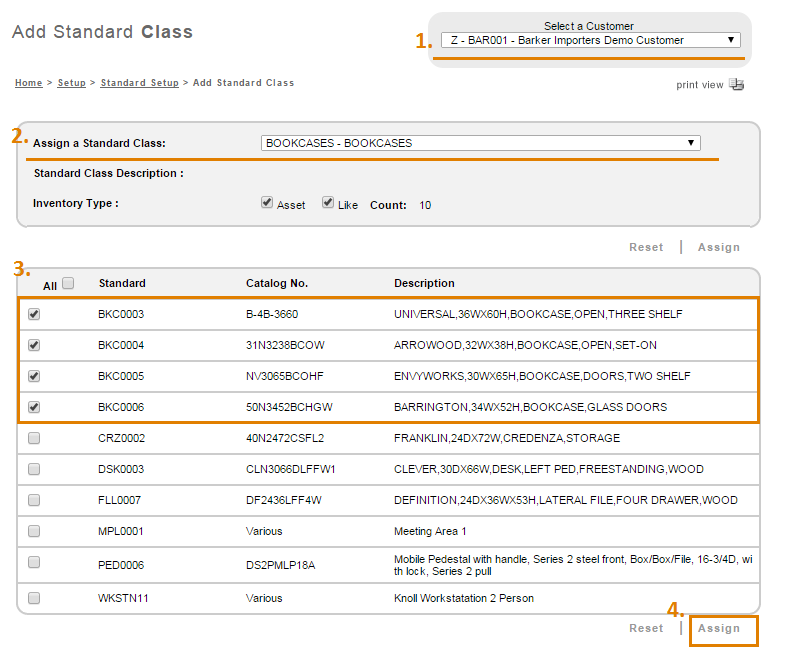 Using the Assign a Standard Class drop-down selection box, select a Standard Class (e.g, Bookcase). To learn about how to create a Standard Class so that it appears on the list, click here.