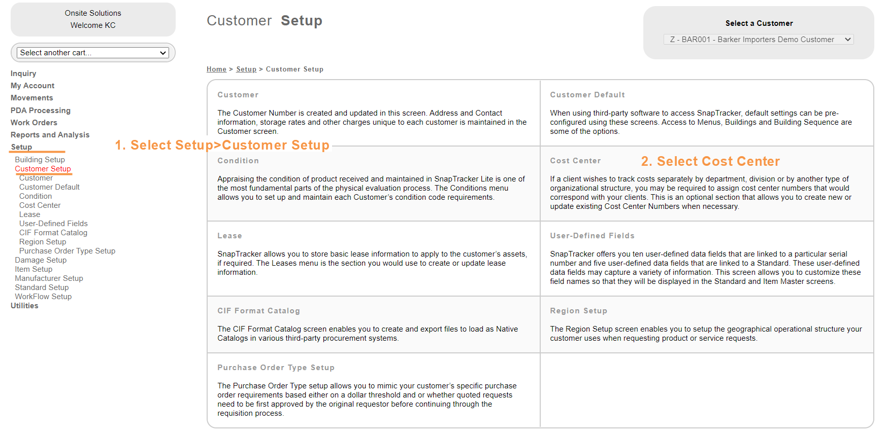 The Customer Setup screen displays.