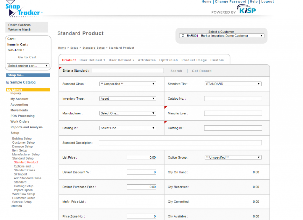 From the main navigation bar on the left, select Setup, Standard Setup and Standard Product.