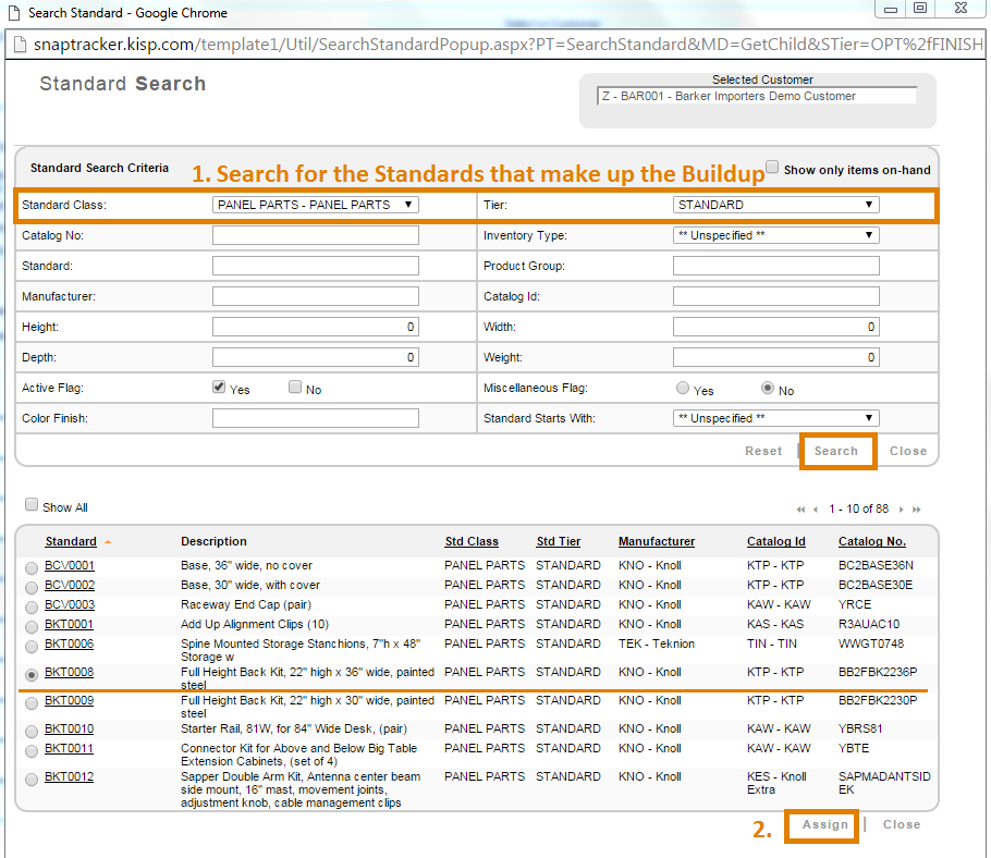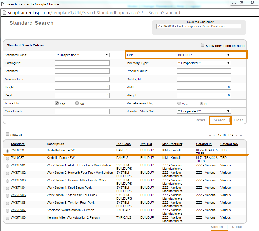Select the check-box beside the Standard you would like to assign to the Buildup. Click Assign.
