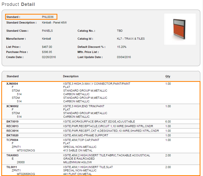 A Buildup is a group of Standards put together to create a more complete item. A panel system made up of frames and tiles is a good example of a Buildup.