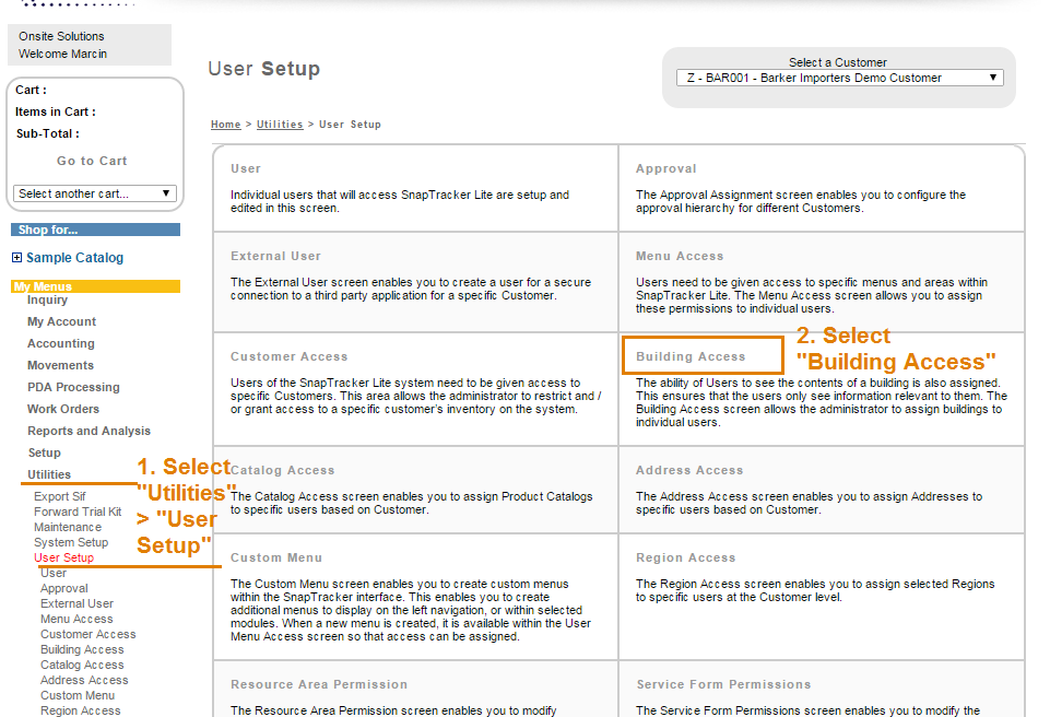 Note that once a user is assigned access to certain buildings, the user will only be able to inquire product from those buildings.