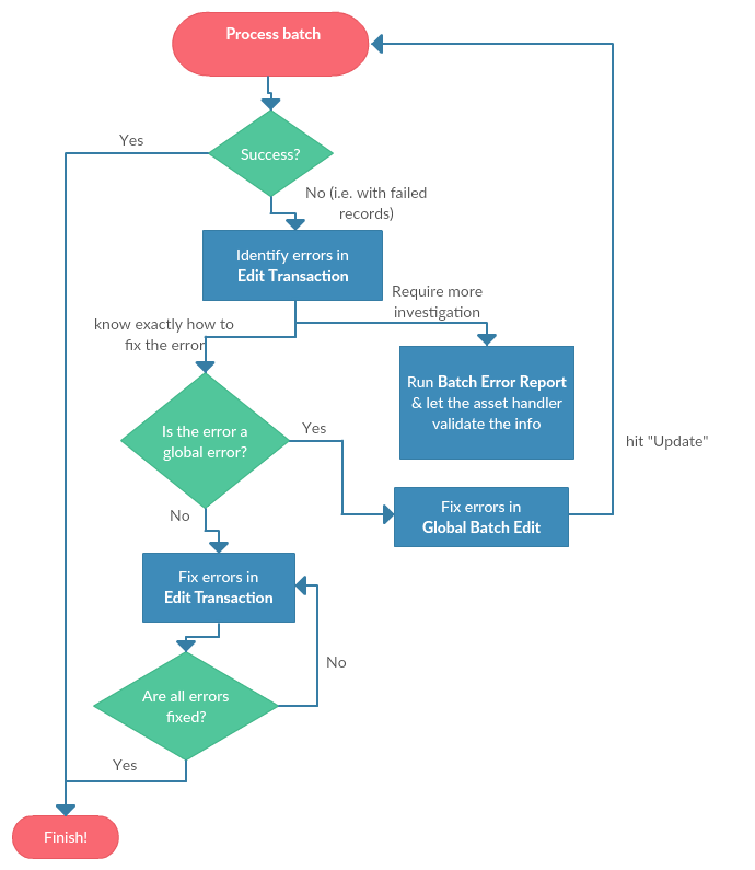 A bit confused on how and where to identify batch errors and modify them? This flow chart is designed to help you with that!