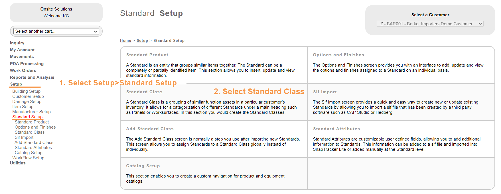 Once the Standard Classes are created, you can proceed to create Standards for the specific product and assign Standard Classes to the Standards.