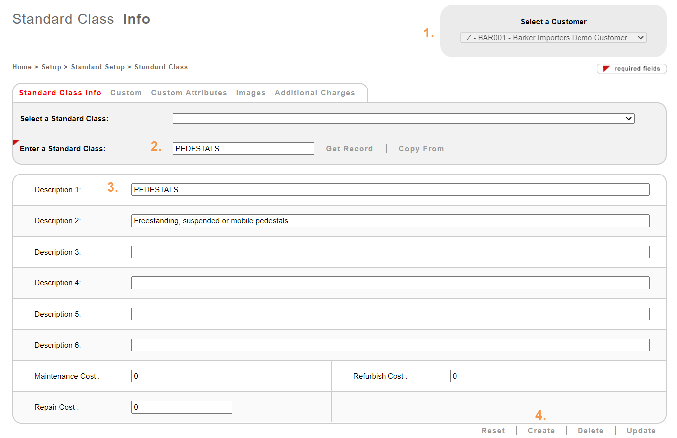 Instead of creating Standard Classes for each Customer, use the Copy From button to copy Standard Classes from one Customer to another. You can also edit or delete them.